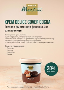 --Конд.полуфабрикат: отделка и начинка "Delice Cover Cocoa (Делис Ковер Кокоа)" 1кг001. Масложировая продукция002. Глазури,шоколад,какао003. Гели,покрытия-крем,мастика004. Повидло, начинки, фруктовые наполнители005. Красители и ароматизаторы,пасты десертные, топпинги018 Наполнители для напитков, Топпинги, Сиропы006. Молоко и молочные продукты007. Патока, крахмал, кисель008. Дополнительное сырье009.4. Заварки, закваски, улучшители хлебопекарные, х/б смеси010. Дрожжи011. Сливки, кремы, фонды, база для мороженного012. Кондитерские смеси, улучшители, мука ореховая013. Специи и пряности014. Сухофрукты, орехи, семечки, фрукты015. Украшения кондитерские и хлебопекарные016. Формы для кондитерских изделий017. Инвентарь для кондитерского производства