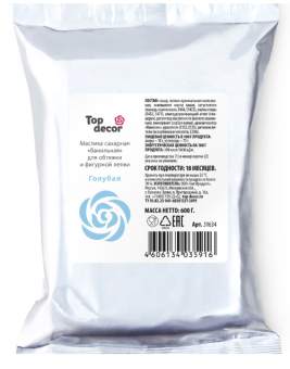 ОписаниеСахарная мастика с тонким ароматом ванили — уникальный кондитерский полуфабрикат для декорирования изделий. Создана на основе эквивалента какао-масла, благодаря чему является универсальной массой для обтяжки тортов, фигурной лепки, а также для создания тонких элементов декора. Мастика легко окрашивается любыми пищевыми красителями, для создания перламутрового эффекта рекомендуется использовать сухой блестящий краситель. Арт. tp35916 Страна: РОССИЯ Состав продукта: Сахар, патока крахмальная мальтозная, эквивалент масла какао, загустители (E415, E466, E1422), эмульгаторы (E432, E471), влагоудерживающий агент (E422), регулятор кислотности (Е330), консервант (E202), ароматизатор "Ванилин", красители (E132, E133), антиокислители (Е300, Е306). Срок годности: 18 месяцев