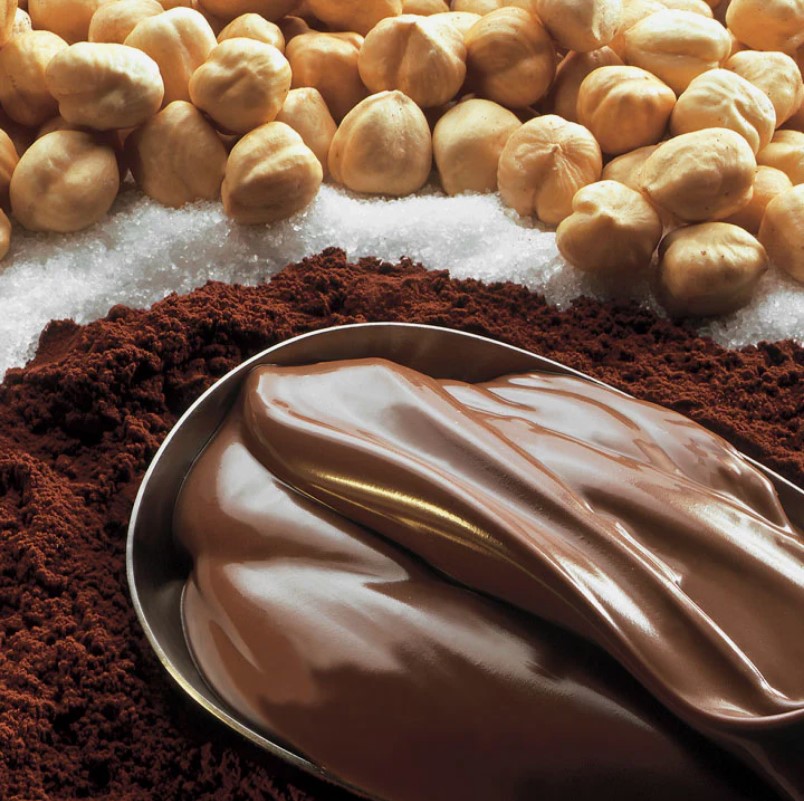 Состав: Сахар белый кристаллический свекловичный, вода питьевая, сироп глюкозный, стабилизаторы (Е1442, Е460), фундук дробленый, какао-порошок, заменитель молочного жира (масла рафинированные дезодорированные: фракции пальмового масла (в т.ч. модифицированные), масло подсолнечное (в т.ч. модифицированное), эмульгатор (Е471), антиокислители (Е304i, Е306)), сыворотка молочная сухая, соль пищевая, регулятор кислотности (Е330), ароматизатор пищевой, консервант (Е202)